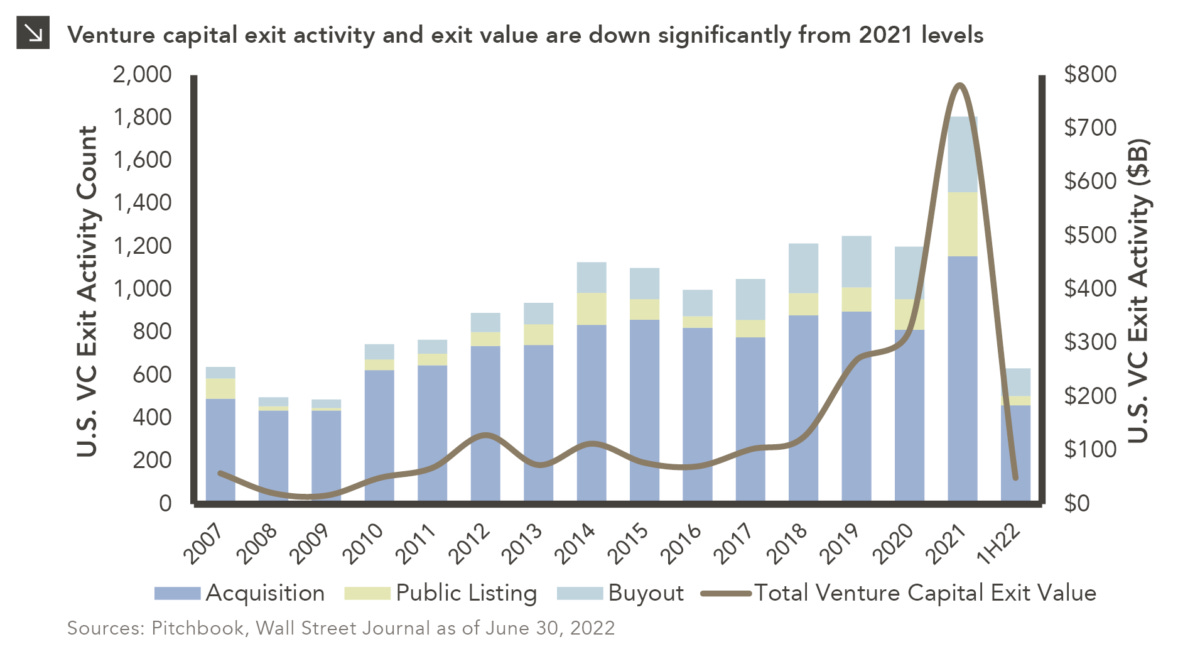 Liquid outcomes now lean toward private strategic sales or buyouts, not public offerings.