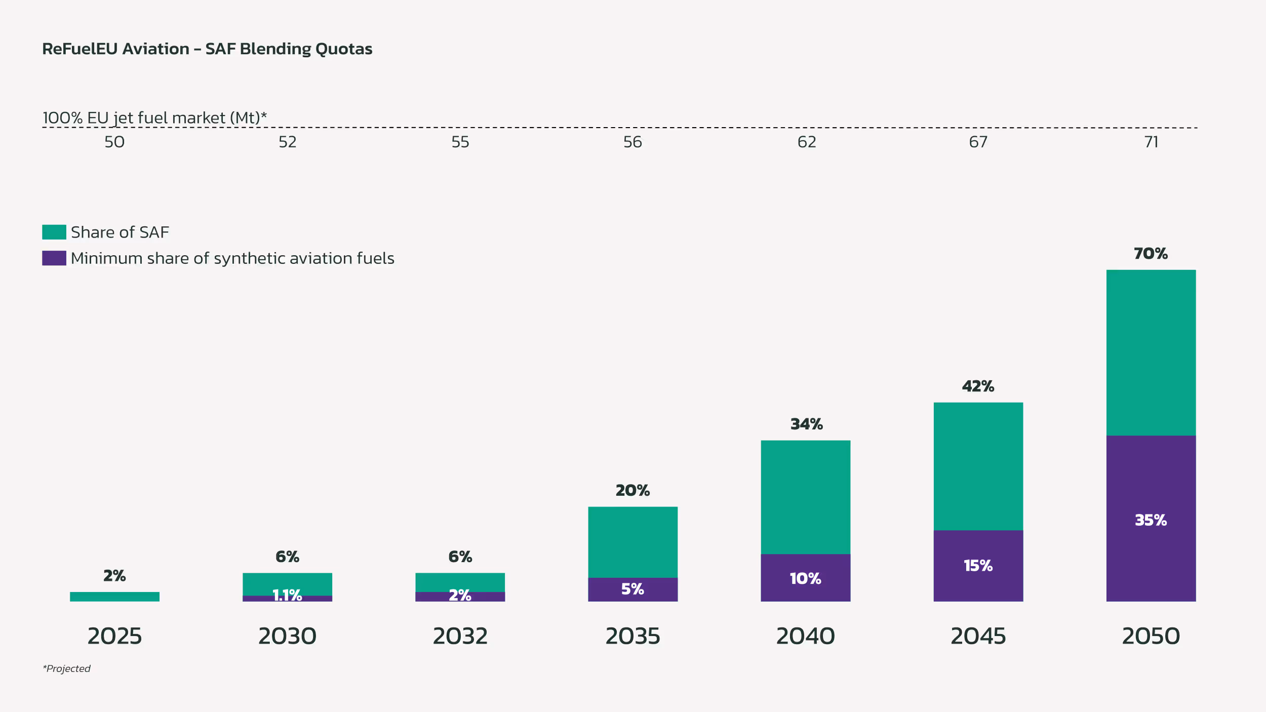 SAF blending quotas under the ReFuelEU Aviation regulation (Source: NOW GmbH)