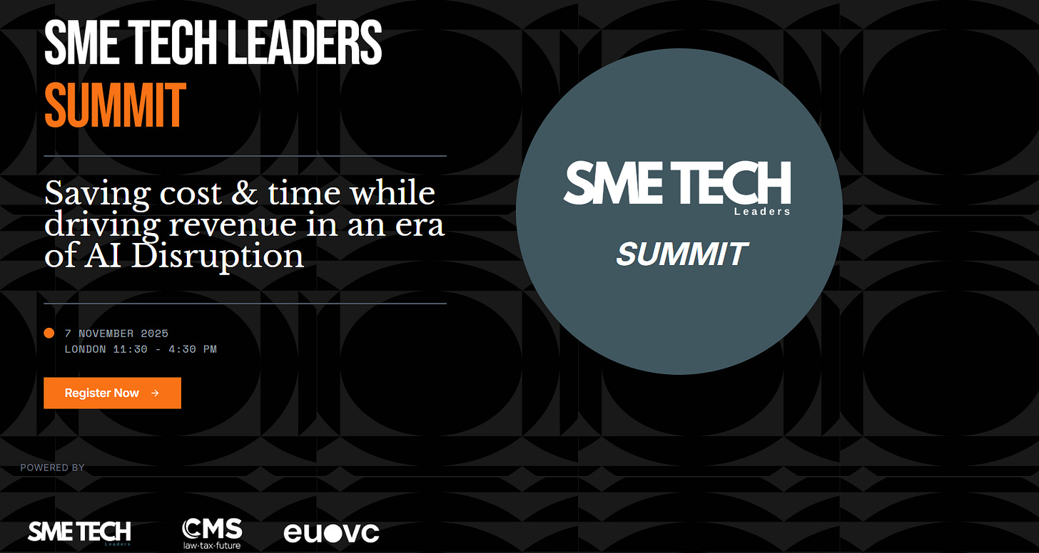 Plus — we’ve just opened registration for the SME Tech Leaders Summit 2025, bringing together the builders and backers driving AI adoption across Europe’s real economy.