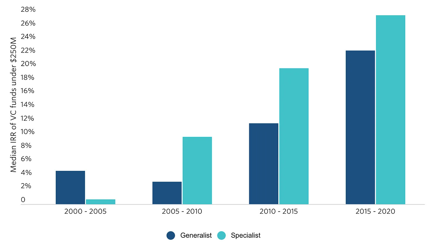 As James suggests, in frothier bull markets - where sheer access often trumps deeper insight - generalists can still thrive. However, I’d argue the dynamic isn’t entirely black-and-white. We’ve also seen specialists leverage their domain expertise to sustain (and even expand) their advantage, regardless of market conditions. Ultimately, outcomes tend to hinge on how well a fund can adapt, rather than whether it’s strictly specialised or generalist.