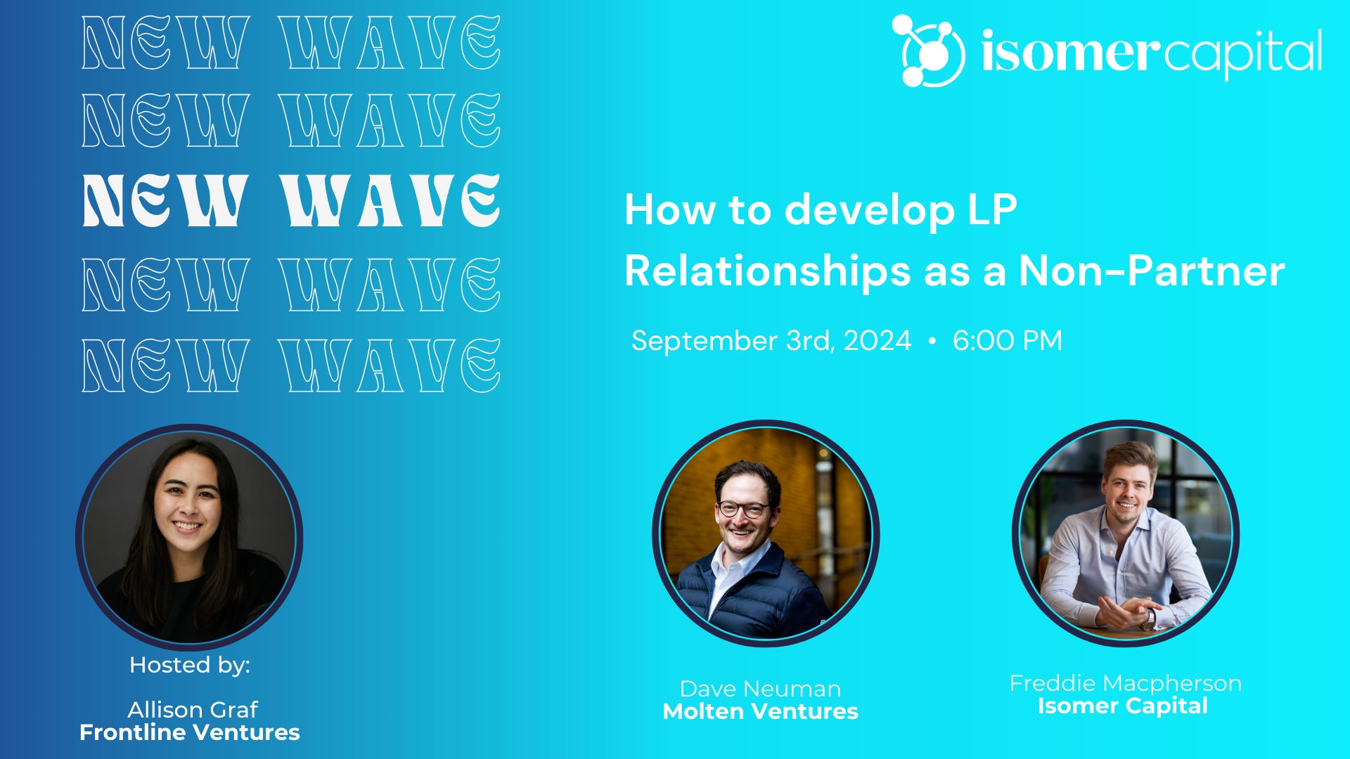 The panel focused on LPs and ways in which non-Partners can effectively engage with them. Our panel was hosted by Allison Graf from Frontline Ventures and featured Isomer's Associate Freddie Macpherson and Dave Neuman from Molten Ventures.