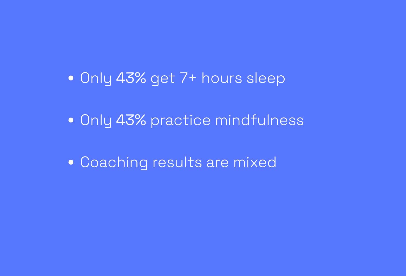 The report shows that only a little over a third of founders are sleeping more than seven hours a night and mindfulness and coaching donât seem to be strategies used by the majority of founders.